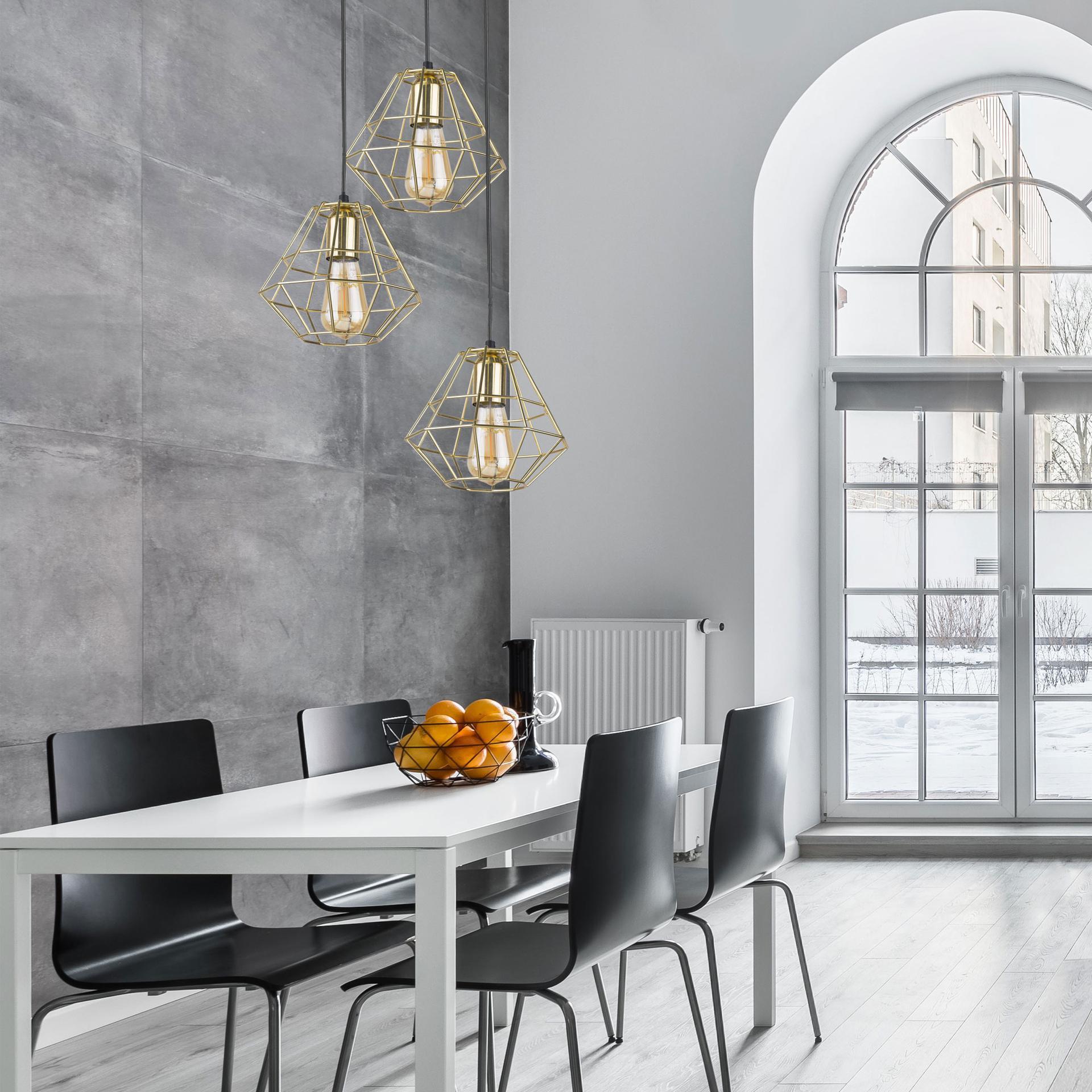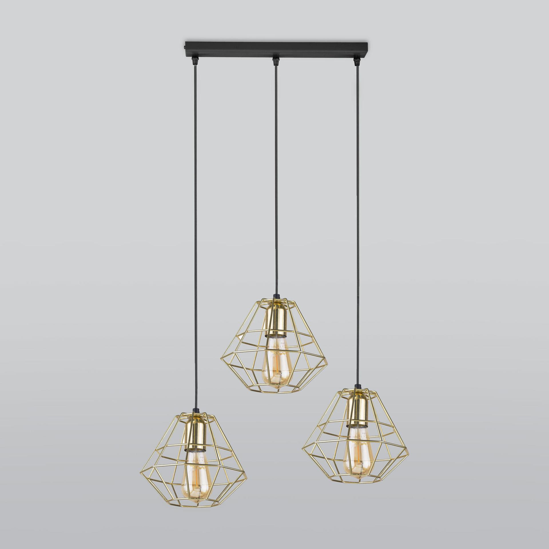 Подвесной светильник 4111 Diamond Gold в серном цвете предназначен для создания дополнительного освещения и акцентной подсветки в современных интерьерах. Светильник со сменными лампами E27 создаст качественное освещение на площади 12 м кв. и подсветит рабочие зоны на кухне, в гостиной, в кабинете и в других местах. Трехрожковый светильник с металлическими золотыми плафонами оборудован системой регулировки высоты подвеса, позволяющей размещать изделие на разных уровнях, уменьшая или увеличивая угол рассеивания светового потока. Подвесной светильник легко устанавливается на любых потолках при помощи монтажной планки. В интернет-магазине Минимир вы сможете купить подвесной светильник с плафоном с доставкой по Москве, Санкт-Петербургу и России.