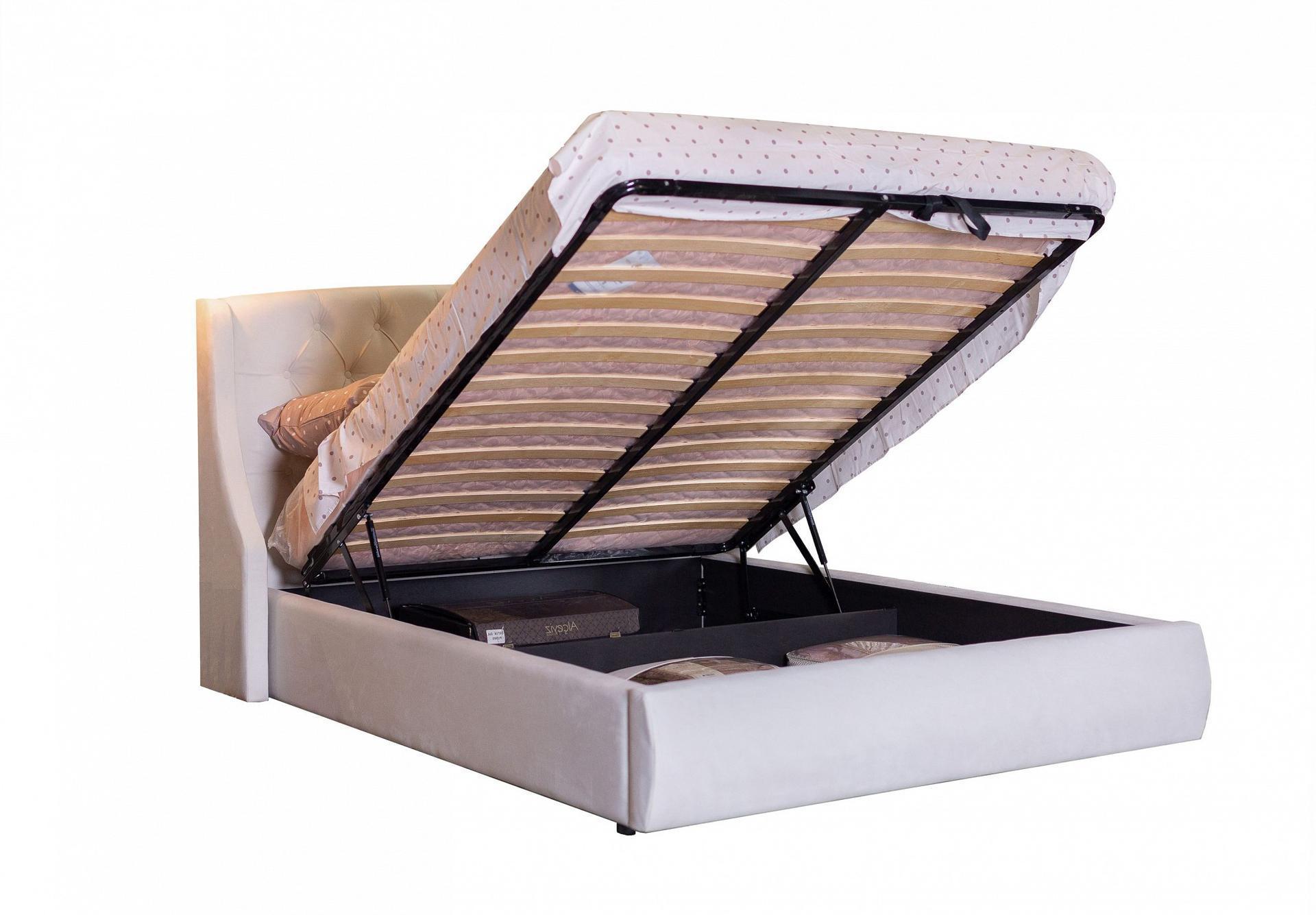 Передняя часть предназначена для хранения постельных принадлежностей. Данное пространство закрывается противопыльным матерчатым коробом из плотного спанбонда.
