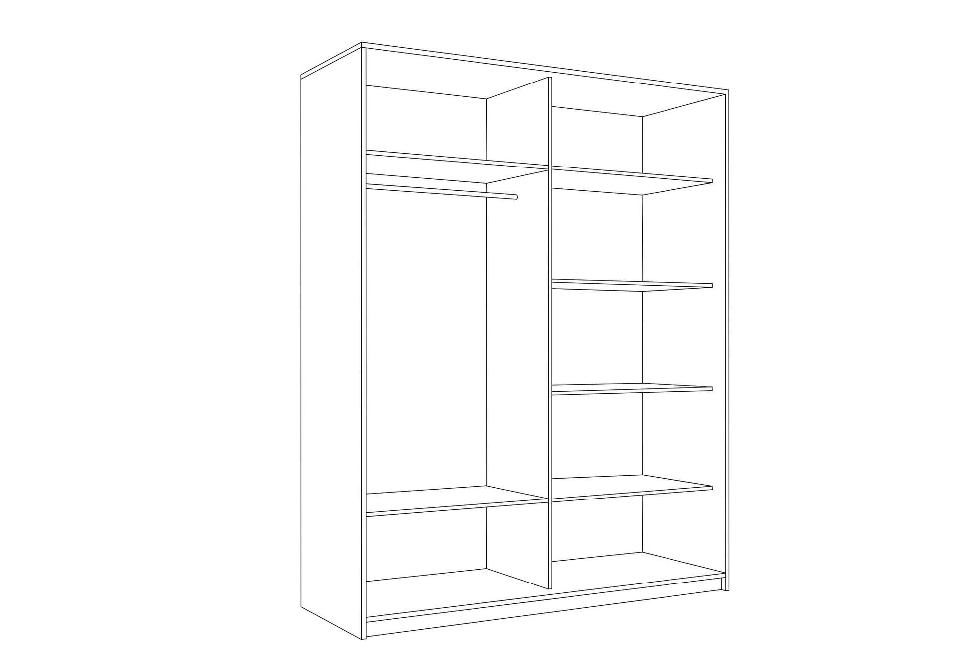 1 штанга для вешалок, 2 дверцы, 6 полок