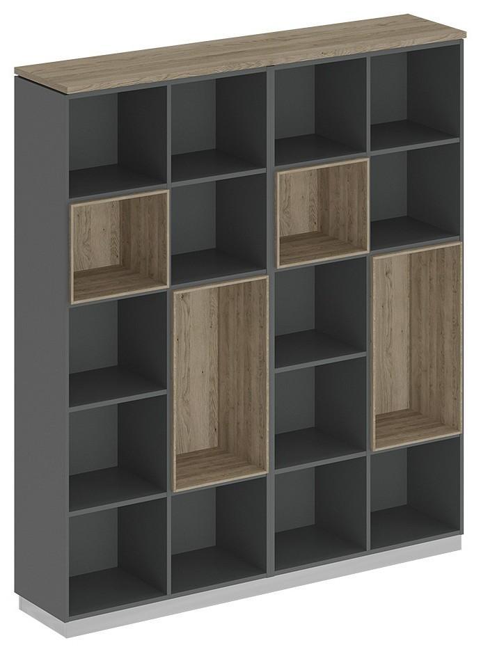Стеллаж является стенкой из двух стеллажей под общим топом. Декоративный зазор между топом и боковыми стенками стеллажей.