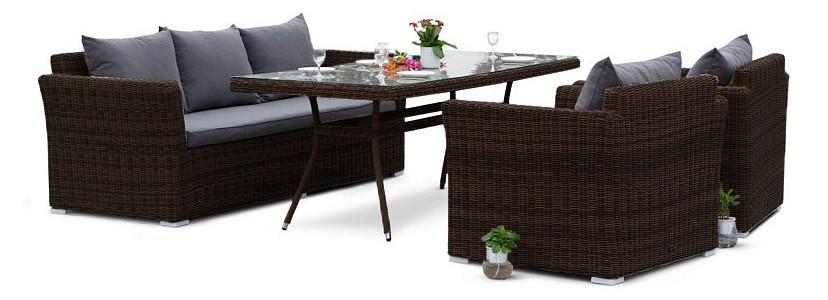 Подушки выполнены из водостойкой полиэфирной ткани для защиты мебели от дождя и солнца.