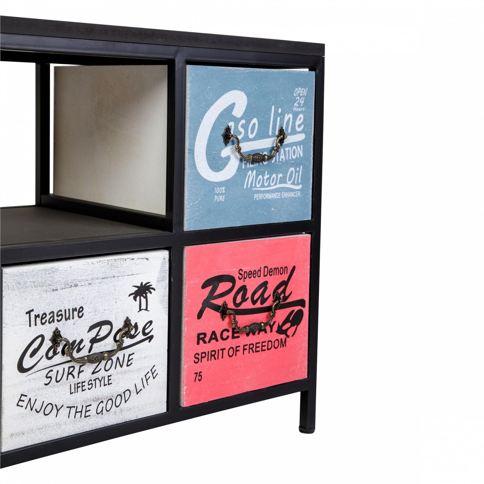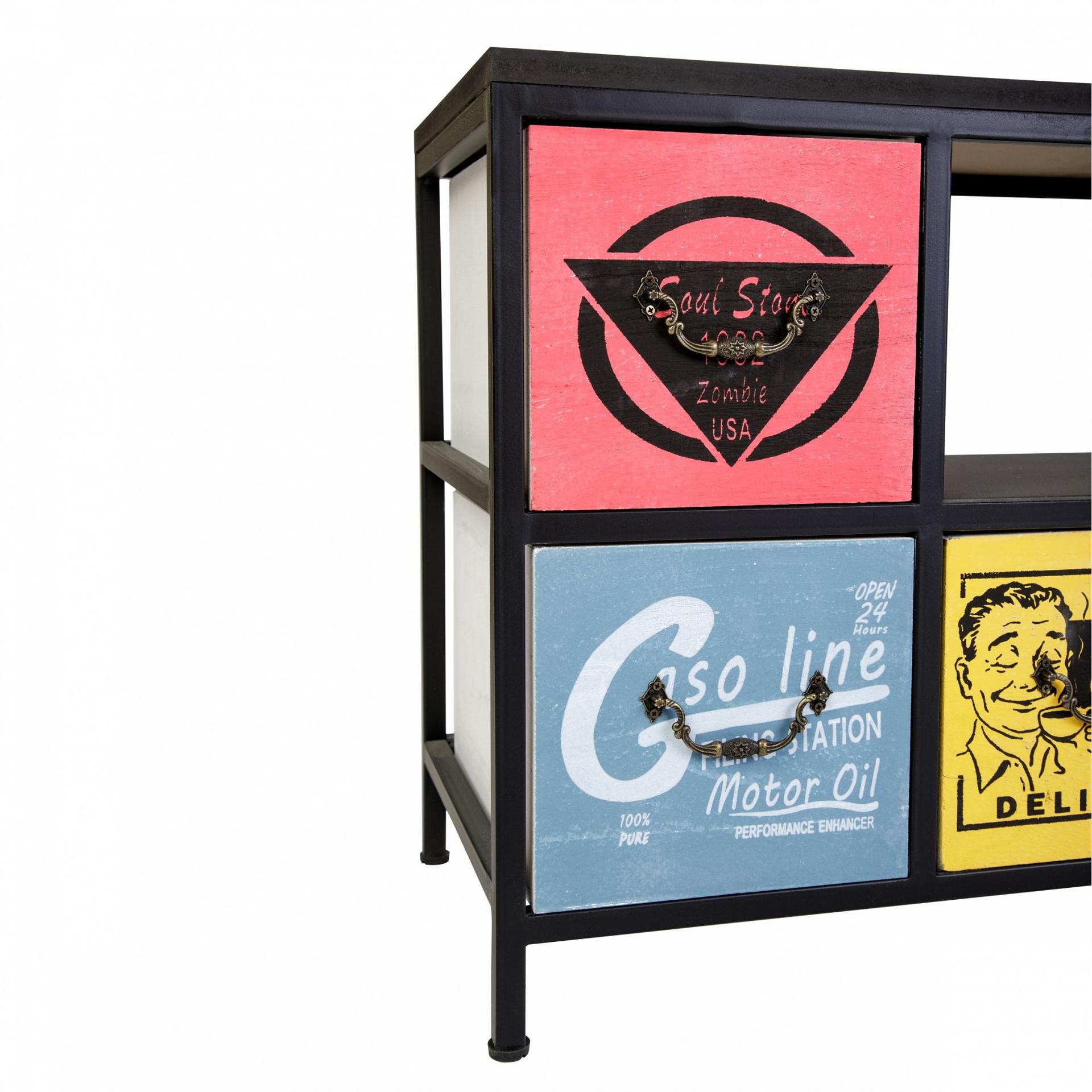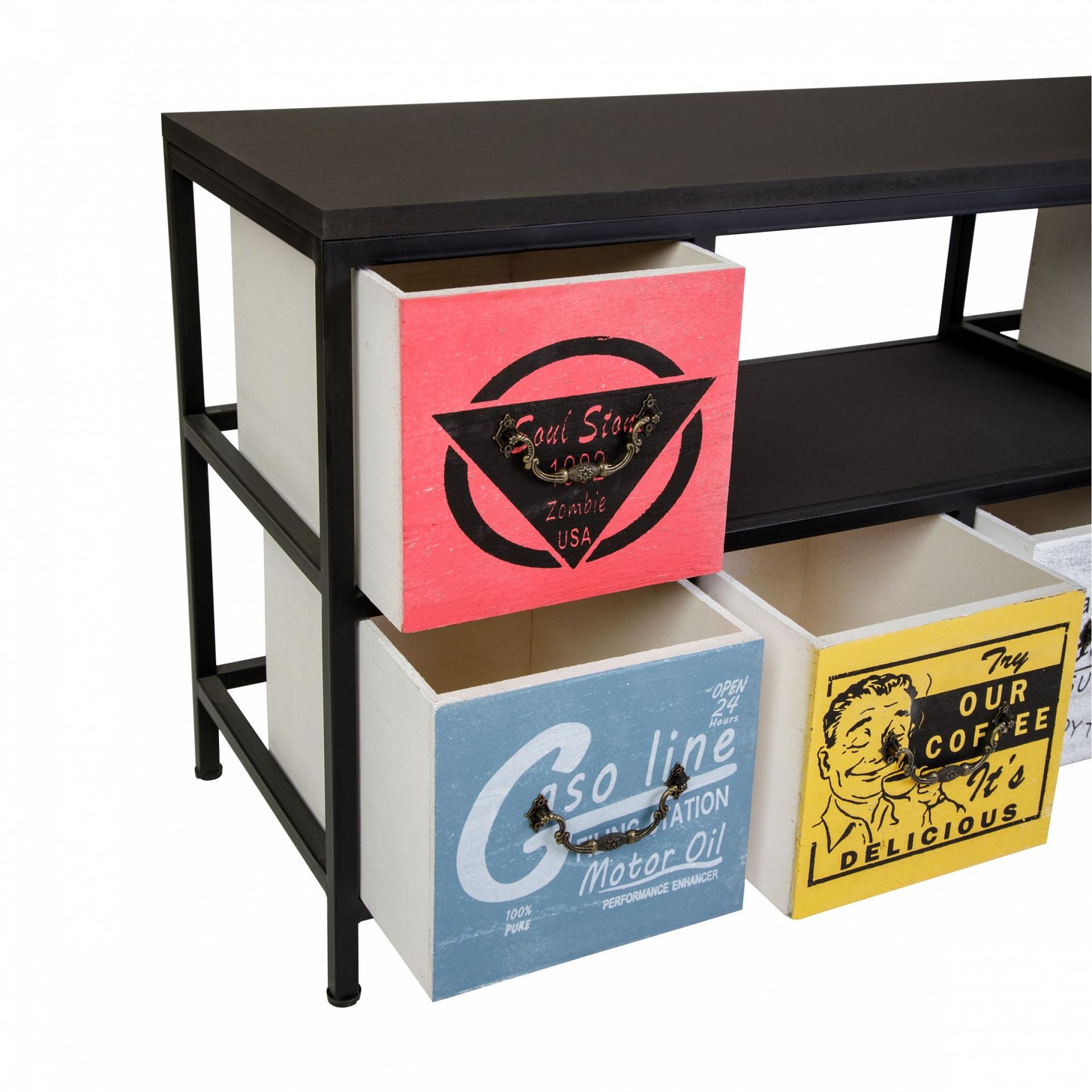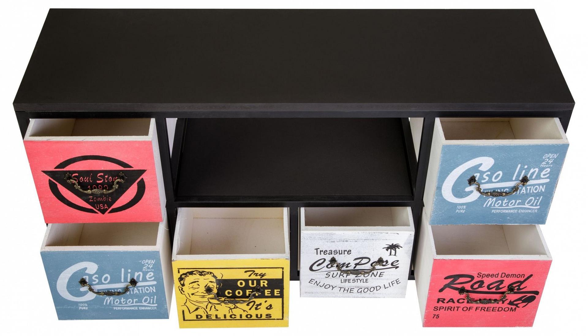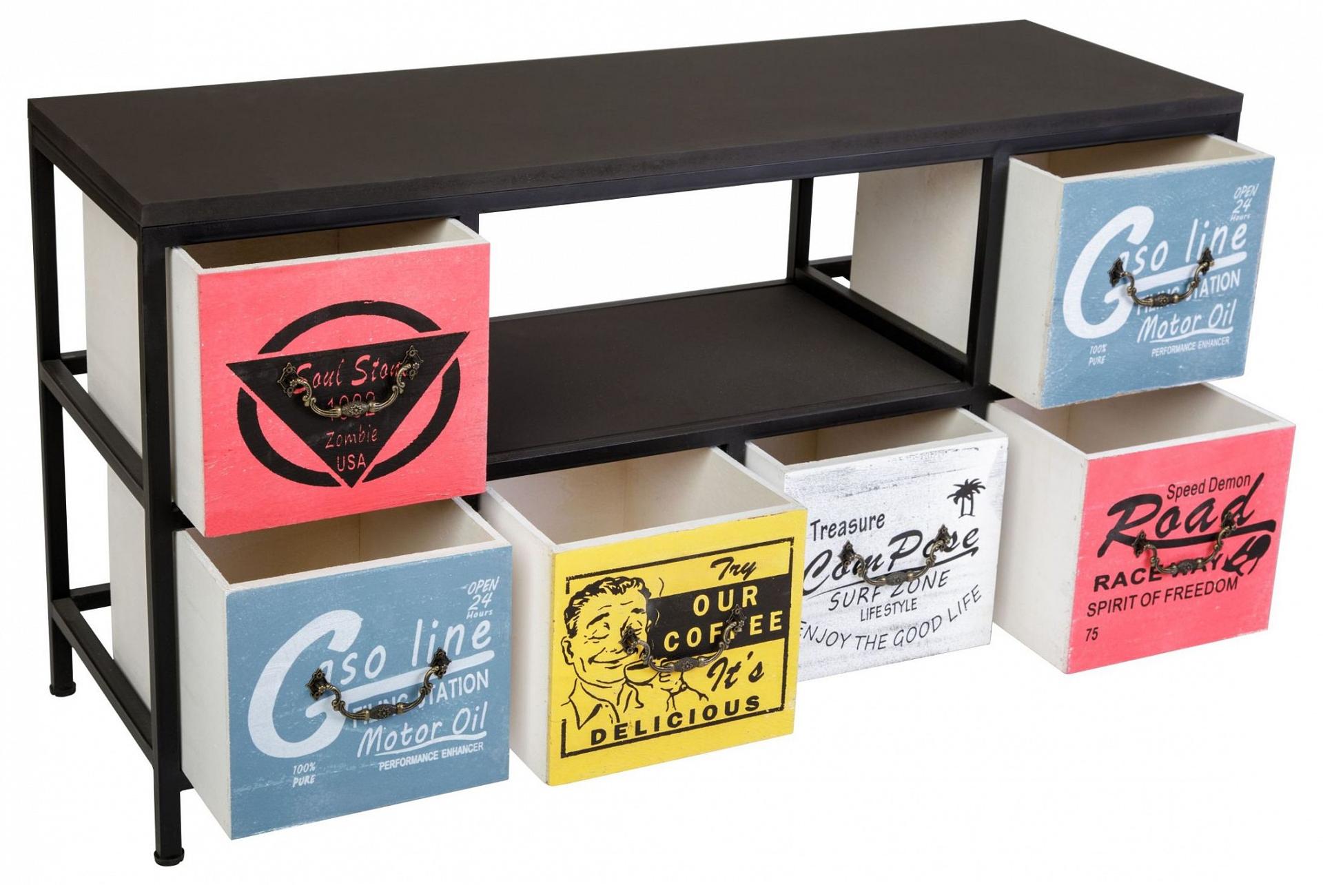 Комод с шестью ящиками и полкой. Каркас комода изготовлен из метала с порошковой окраской. Столешница и ящики изготовлены из дерева (Павловния войлочная), окрашены.
