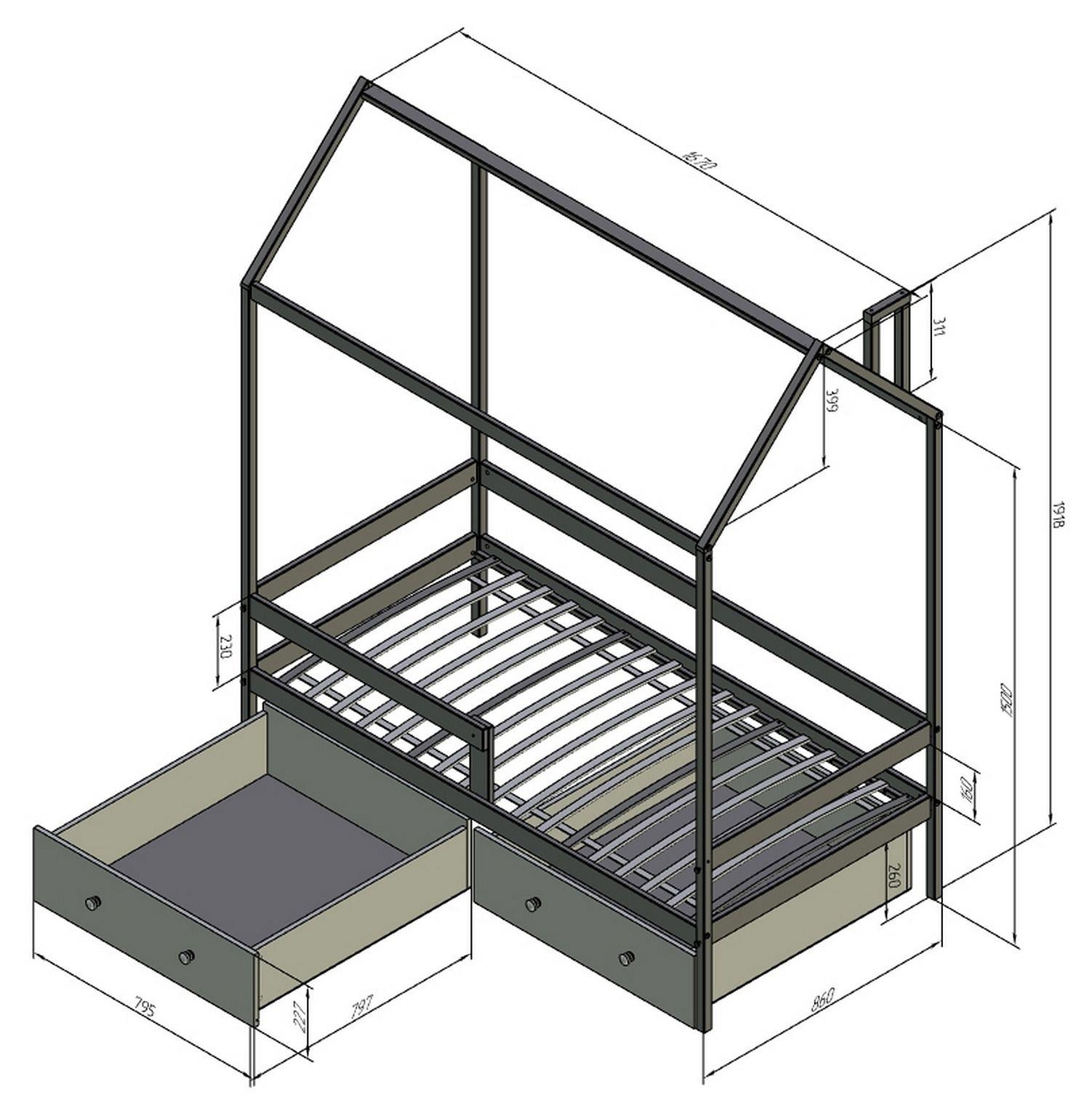 высота крыши - 399 мм,