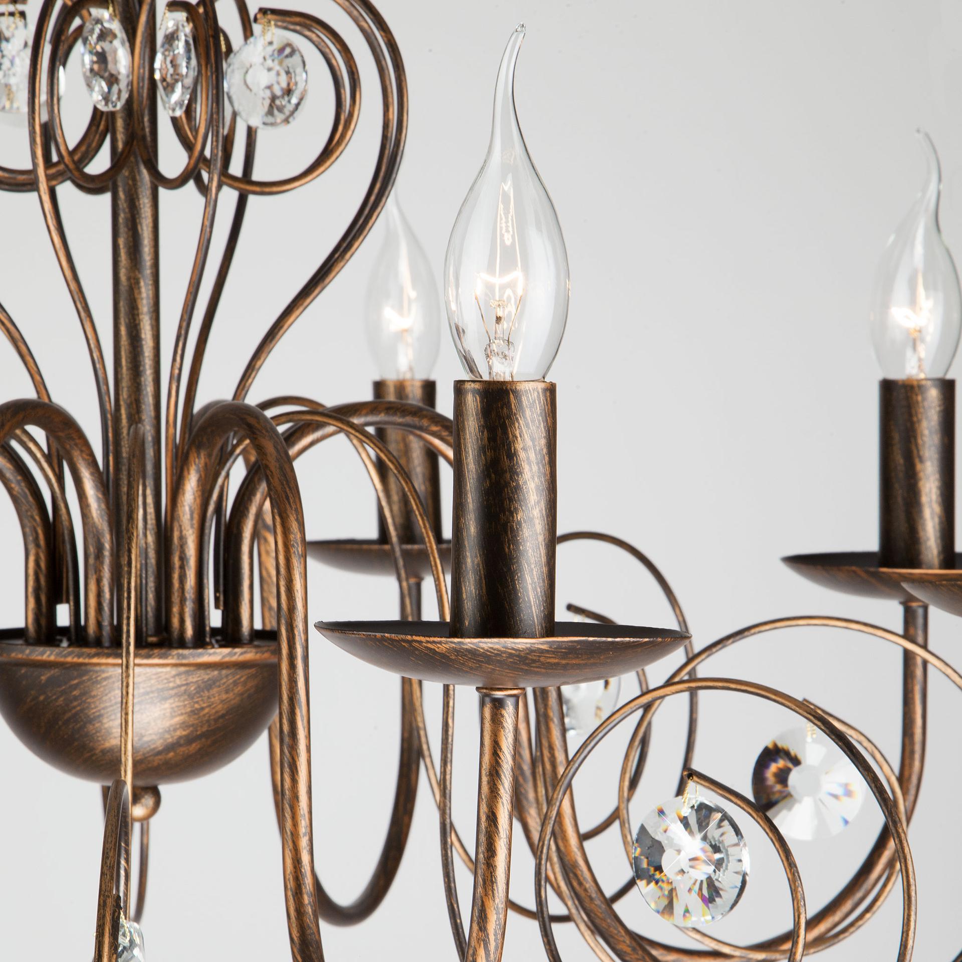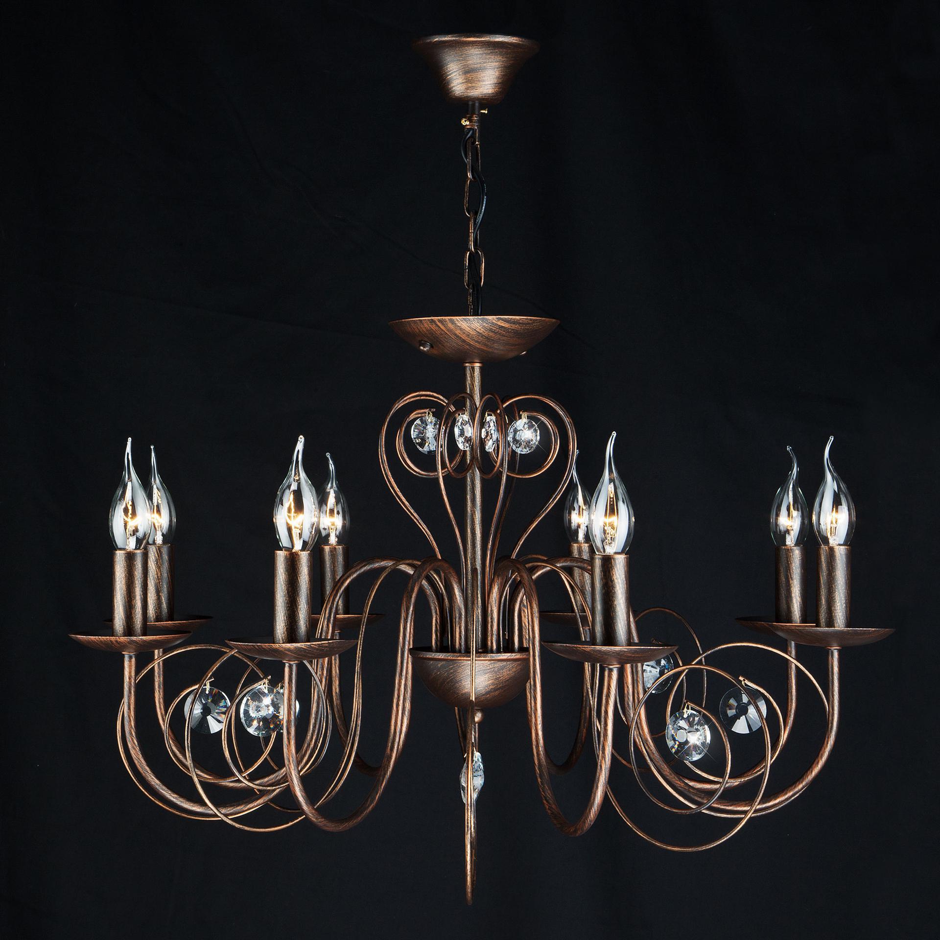 Классическая люстра с хрусталем на 8 рожков в цвете черный с золотом преобразит потолочное пространство и создаст в вашем помещении комфортное полноценное освещение на площади 38 м кв. Изящные формы и классический стиль добавят вашей гостиной утонченного аристократизма. Декоративные рожки в виде подсвечников, украшенные сменными лампами с цоколем E14 типа "свеча на ветру" переливаются на свету яркими завораживающими бликами. В производстве подвесной люстры использовали особое стекло с эффектной огранкой и высококачественный металл с надежным защитным покрытием. В нашем интернет-магазине вы можете купить подвесную хрустальную люстру по выгодной цене с доставкой по Москве и России.