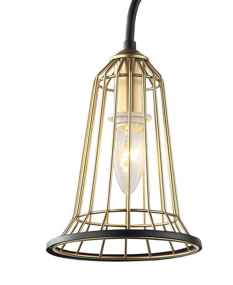 ВЕЙЛЕР. Экстравагантностью форм и свободой идей отличаются модели "ВЕЙЛЕР". Плафон люстр и бра выполнен из металлических прутьев золотого цвета в форме цветочного бутона, распустившегося на тонких стеблях рожков. Черная окантовка имеет бархатистую поверхность, приятную глазу и тактильным ощущениям. Яркий стиль и креативность ваших взглядов в полной мере отразят светильники этой серии.