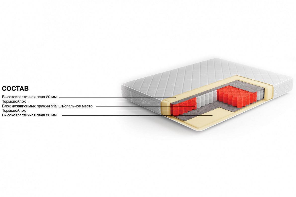 Основная отличительная особенность данной модели - блок независимых пружин, который позволит принять телу правильную форму во время сна. Слой термовойлока защитит комфортные слои и существенно продлит срок службы матраса. Эластичные пены, используемые в качестве комфортных слоев, придадут матрасу приятную упругость и создадут наиболее подходящие условия для здорового сна. Матрас имеет отличную воздухопроницаемость и полностью гипоаллергенен.