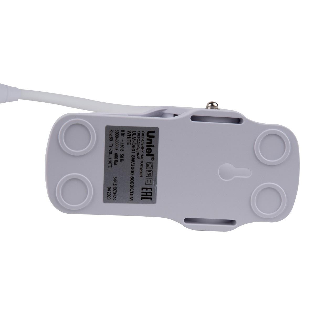 Настольная светодиодная лампа на прищепке Uniel ULM-D601 8W/3000-6000K/DIM White UL-00011094