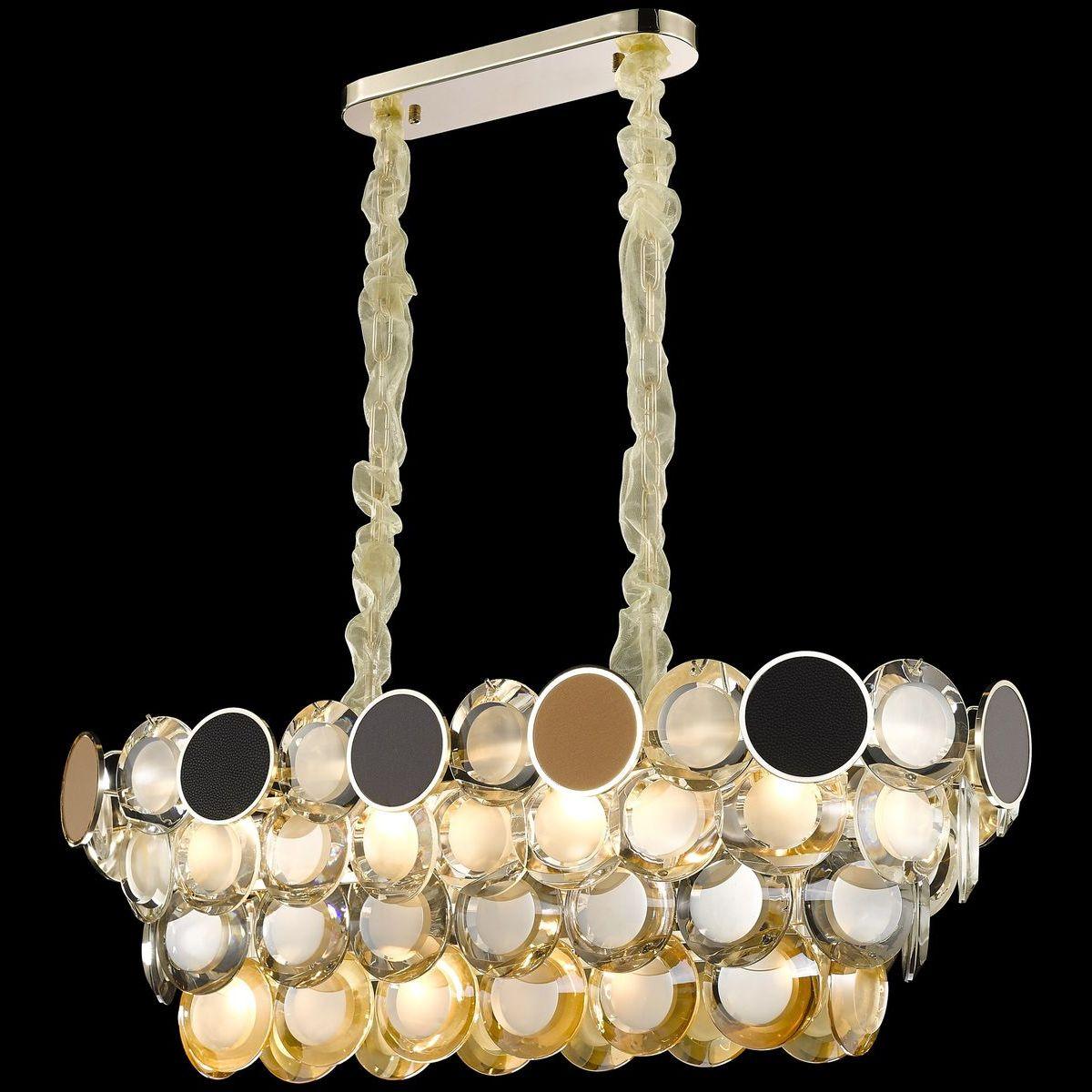Незаурядная модель WE141.12.303 от немецкой компании Wertmark относится к коллекции Oriella и отлично подойдет для установки на потолок в гостиной, оформленной в стиле модерн. Подвесная люстра Wertmark Oriella WE141.12.303 с овальными плафонами осветит помещение площадью 26.7 кв. м. Производитель Wertmark рекомендует использовать для устройства лампы накаливания с цоколем E14 и мощностью 40 W. Прибор произведен с использованием материалов: хрусталь и металл и может использоваться для натяжного потолка. Основным цветом товара является янтарный и золотой. Подвесная люстра WE141.12.303 продается по цене 89528 руб. Торопитесь сделать заказ в интернет-магазине SvetONe.