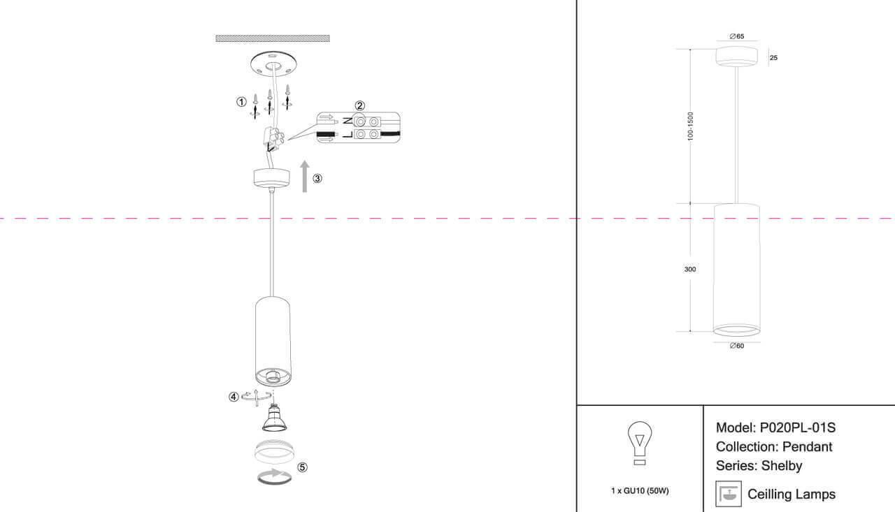 Подвесной светильник Maytoni Shelby P020PL-01S