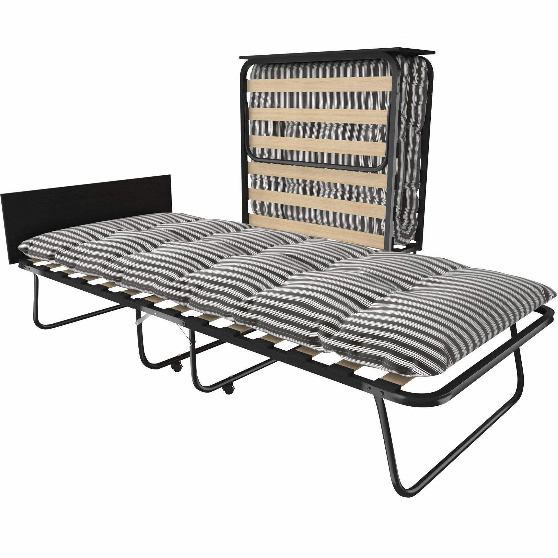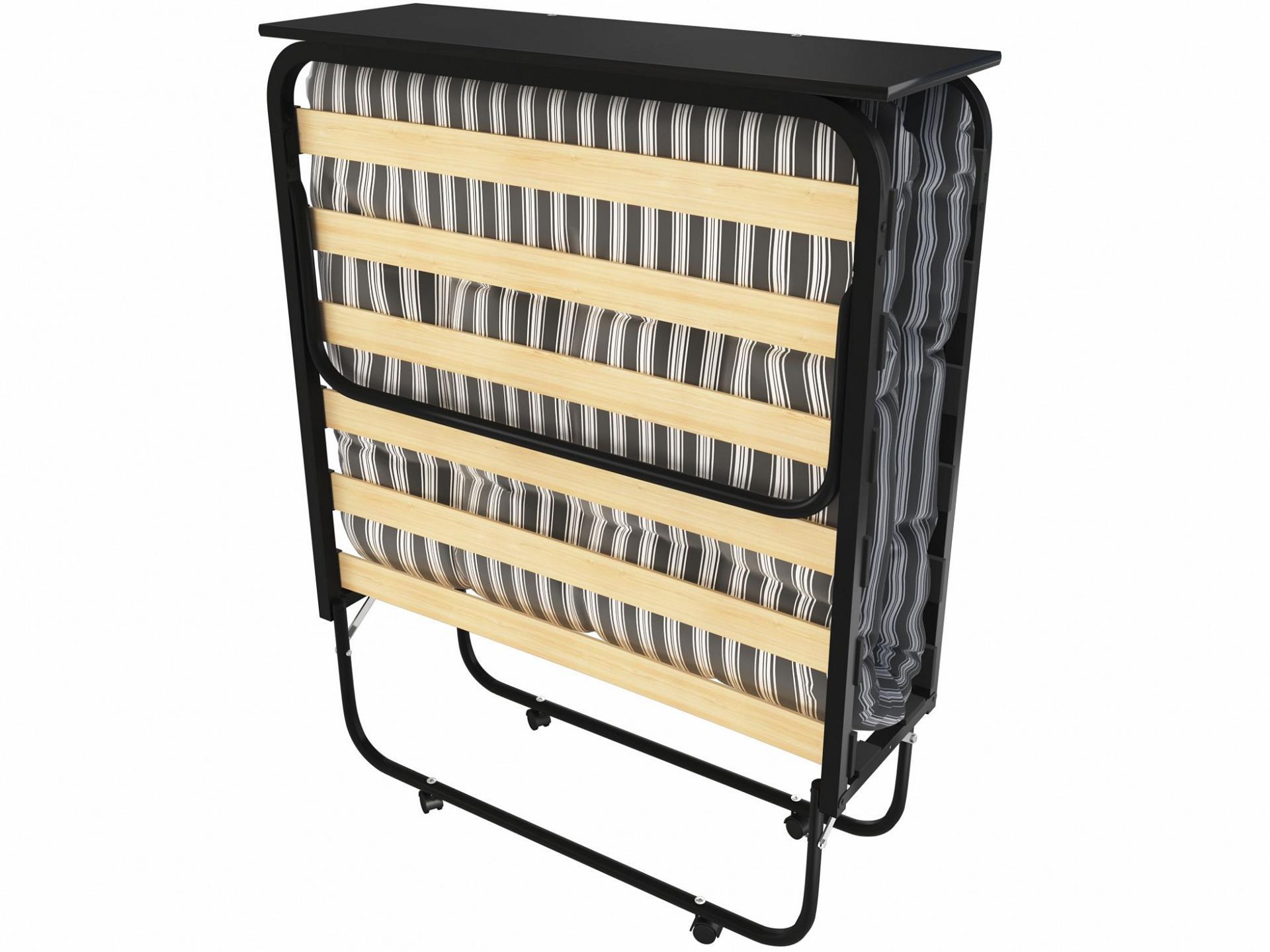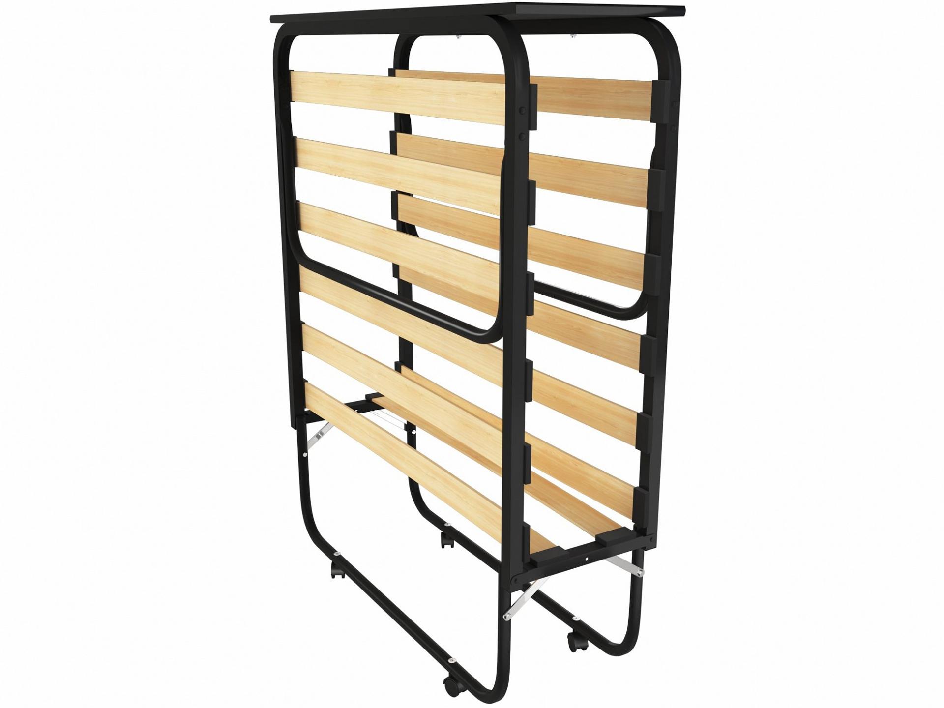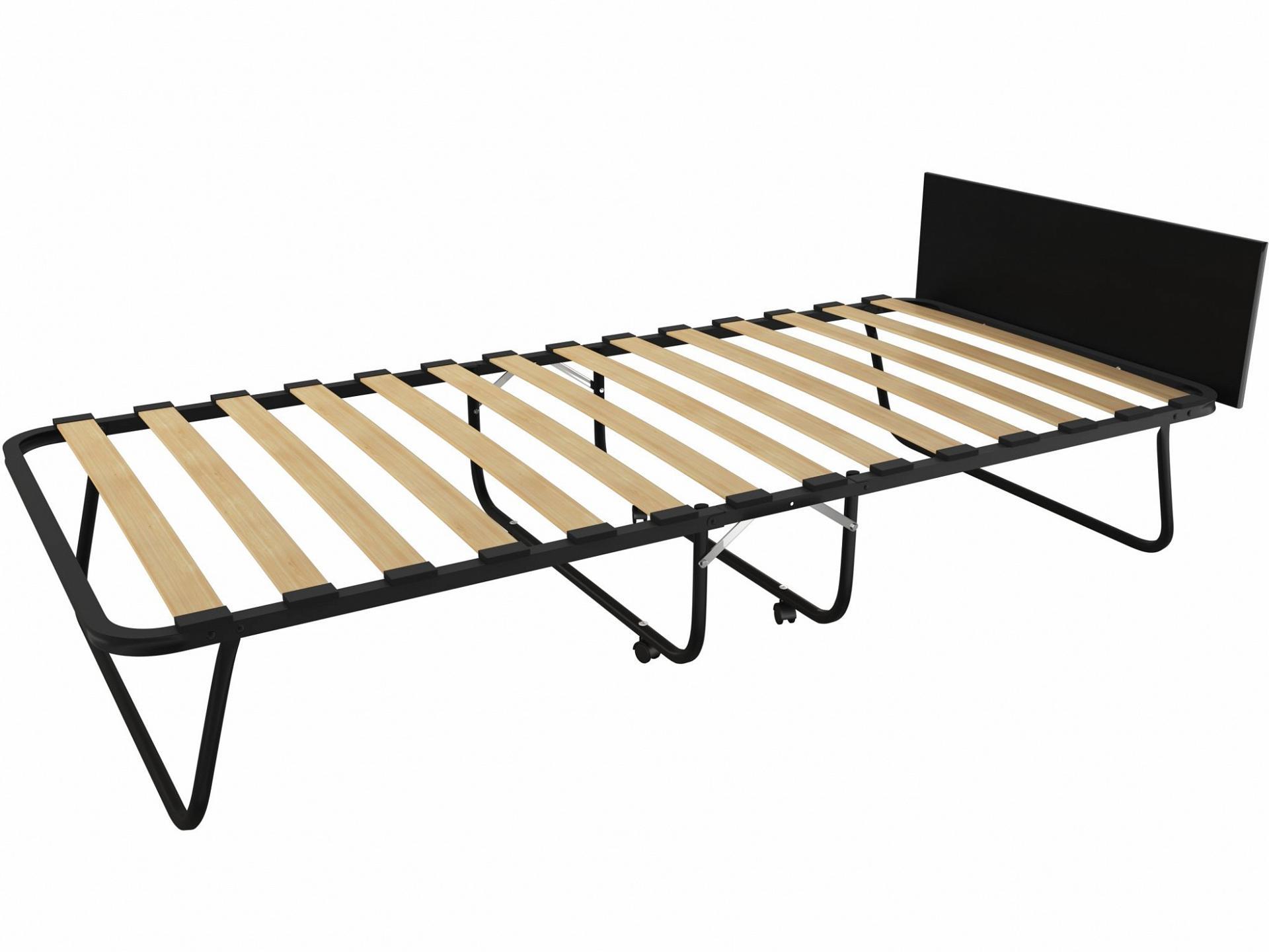 Кровать раскладная (раскладушка) LeSet-205 отличается наличием торцевой спинки, которая во время отдыха удерживает подушку, а в сложенном состоянии служит как полка для небольших предметов.