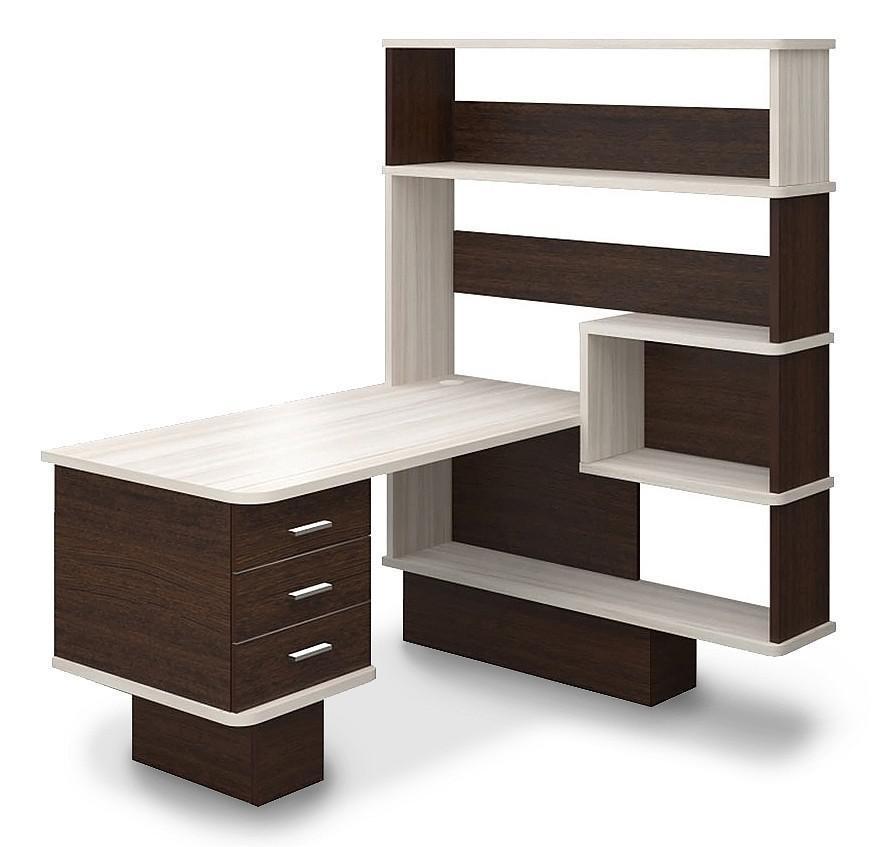 Удобный стол с легкой стеллажной секцией.