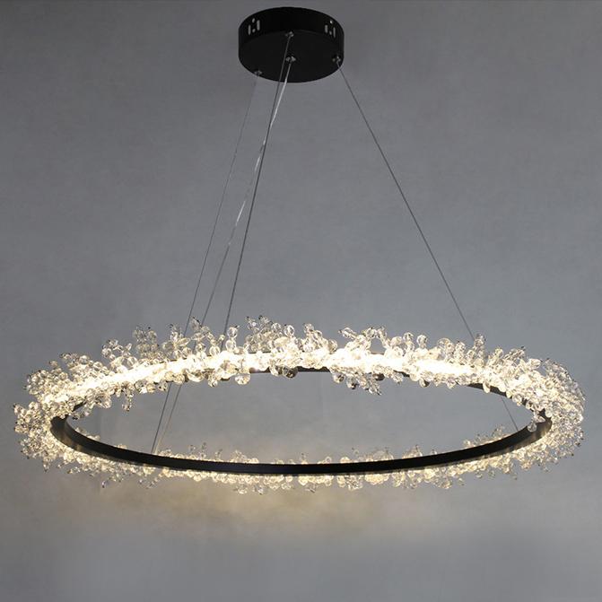 Данная модель входит в состав коллекции Halo Crystal Pendant и исполнена в стиле модерн. Светильник имеет высоту 1300 мм и диаметр 1500 мм. Работает при напряжении 220-240 V.