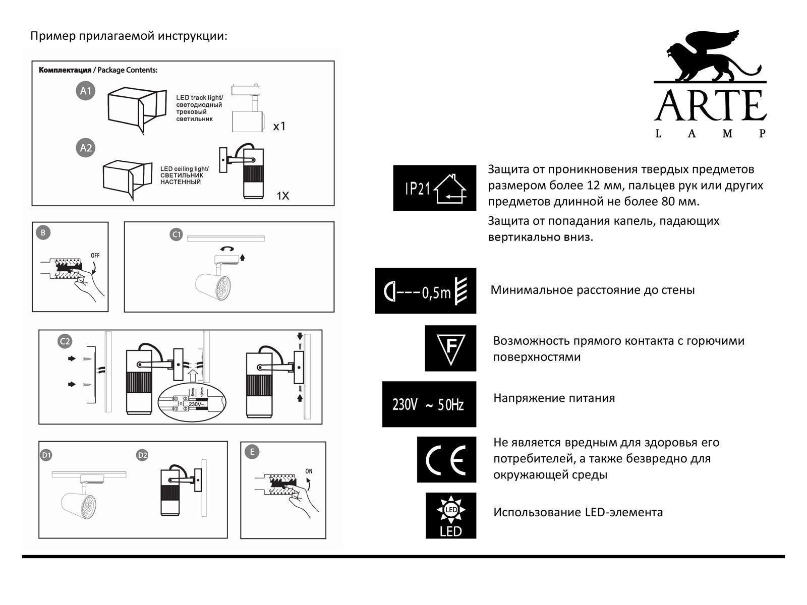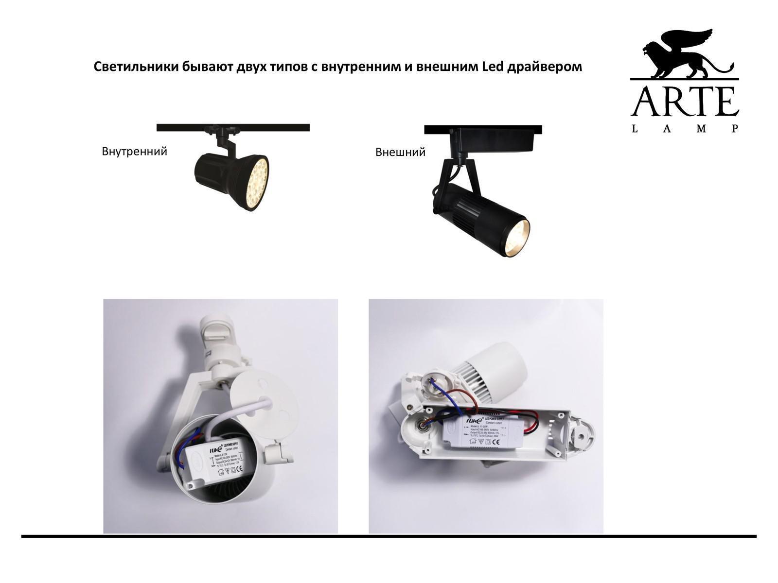 Трековый светильник свободного перемещения (на шину) arte lamp a6107pl-1wh track lights led 1х7w 220v ip21
