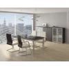 Тумба-витрина состоит из двух шкафов со стеклом и закрытого шкафа для документов под общим топом.