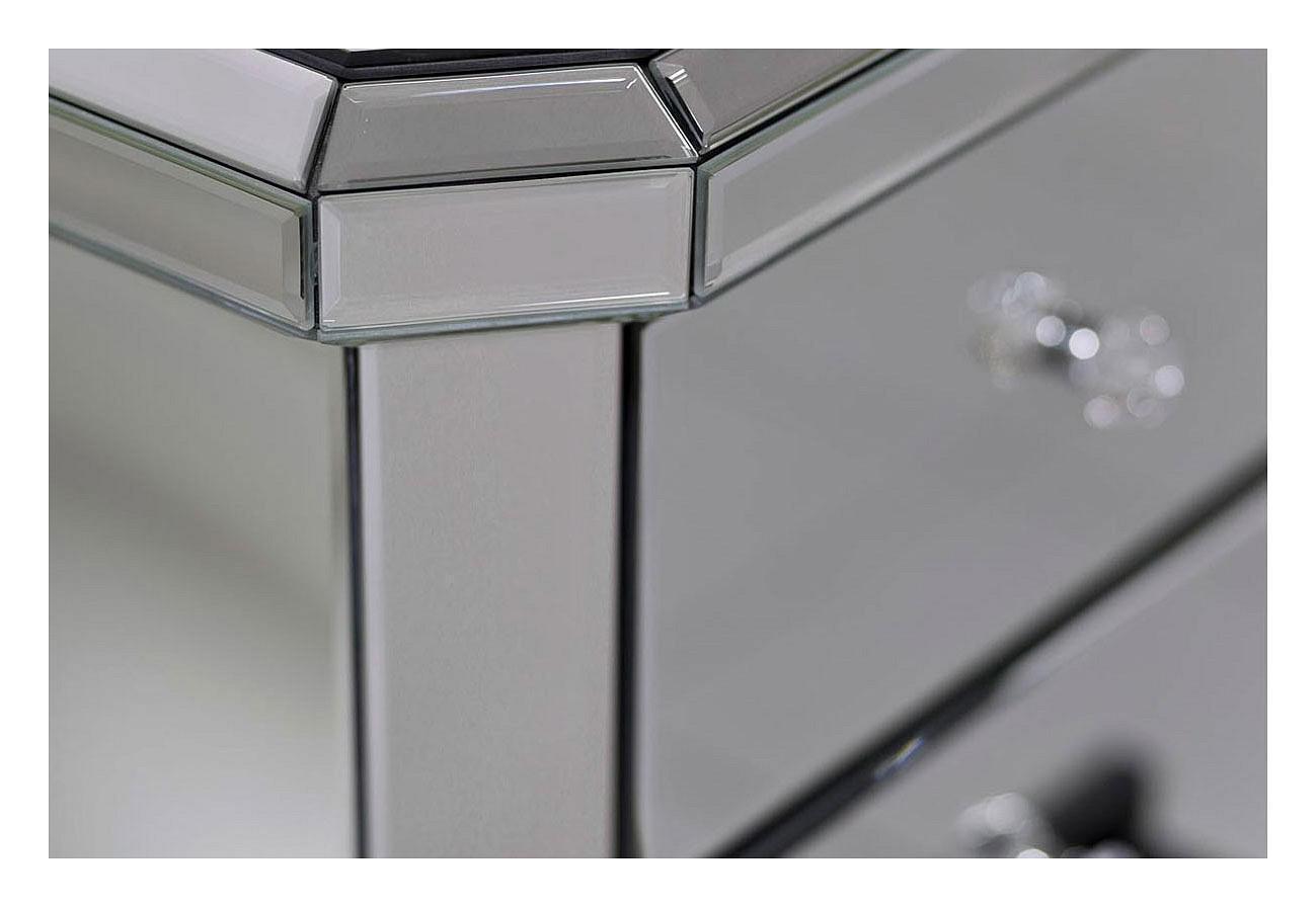 Когда все вещи лежат на своих местах – это залог уютного и аккуратного интерьера. Тем приятнее, когда зоной для хранения является функциональная и надежная Тумбочка KFC882 . Данная модель создана компанией Garda Decor и относится к коллекции «KFC882». Зеркальный корпус изделия сделан из износостойкого материала ( зеркало, МДФ) и окрашен в благородный оттенок «зеркальный». Производитель предлагает следующую комплектацию тумбы: 3 ящика.